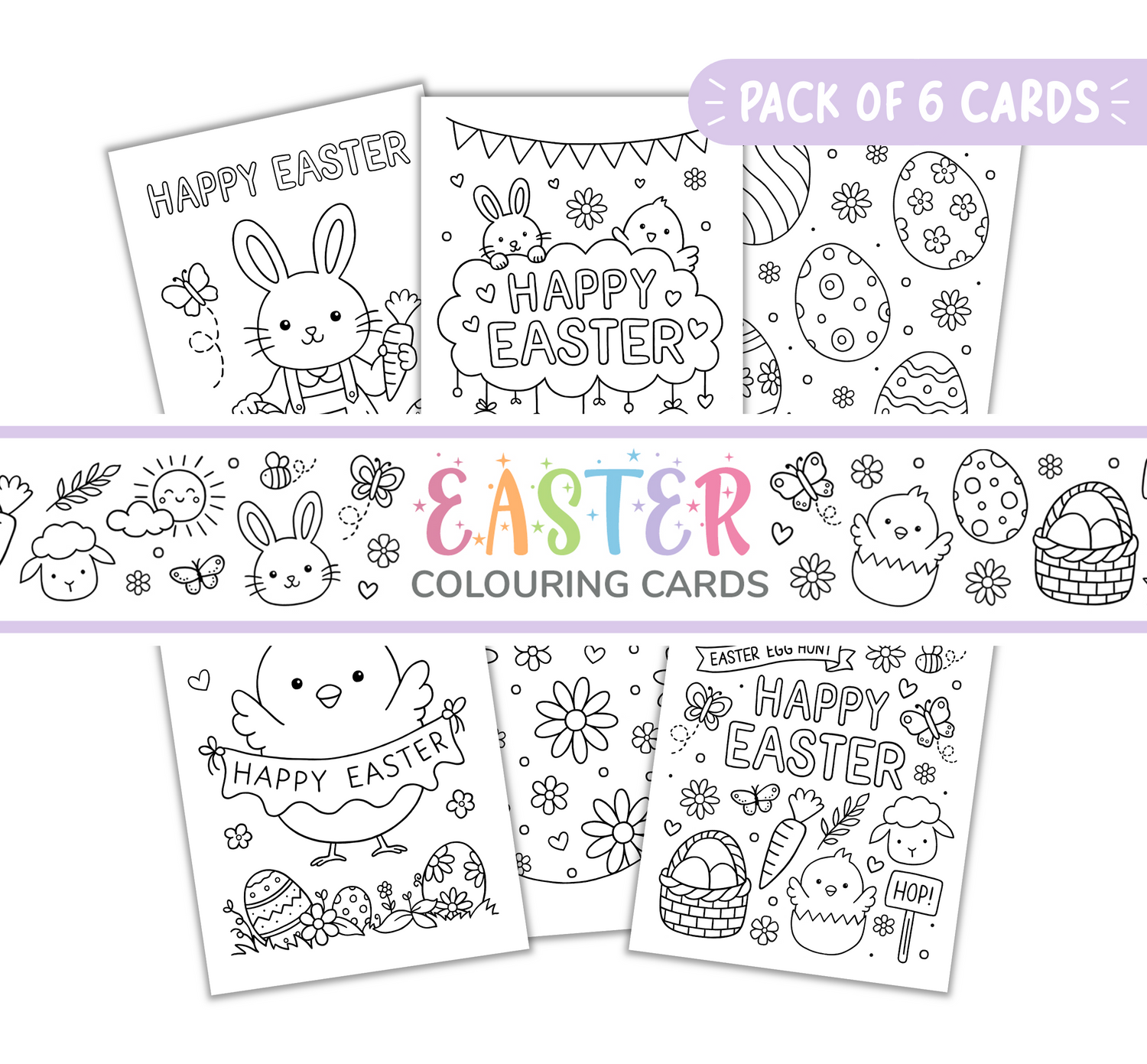 With 6 different designs, these unique, hand-drawn colouring in cards are perfect for keeping little ones entertained this Easter. Each card features a charming Easter-themed design ready to be brought to life with crayons, pencils, or felt tips.